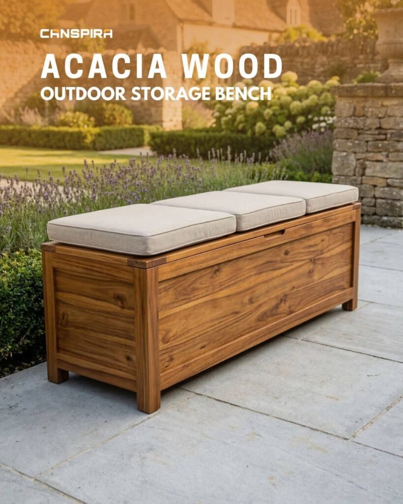 Stand out from the competition by sourcing the ultimate acacia wood outdoor storage bench directly from Canspira, Indonesia’s leading furniture